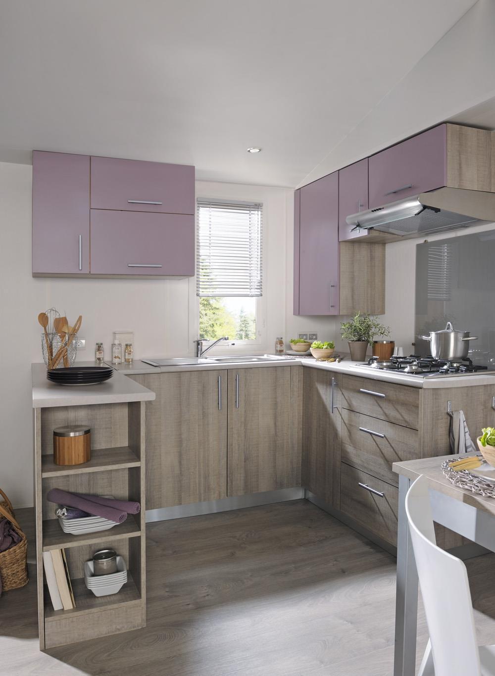 Offene Küche mit Küchenutensilien ausgestattet.