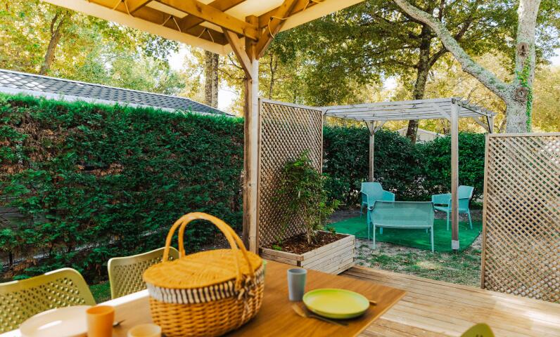 - Halbüberdachte Holzterrasse