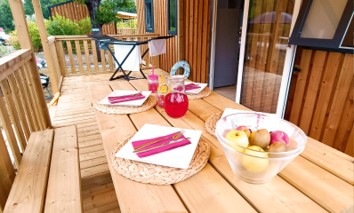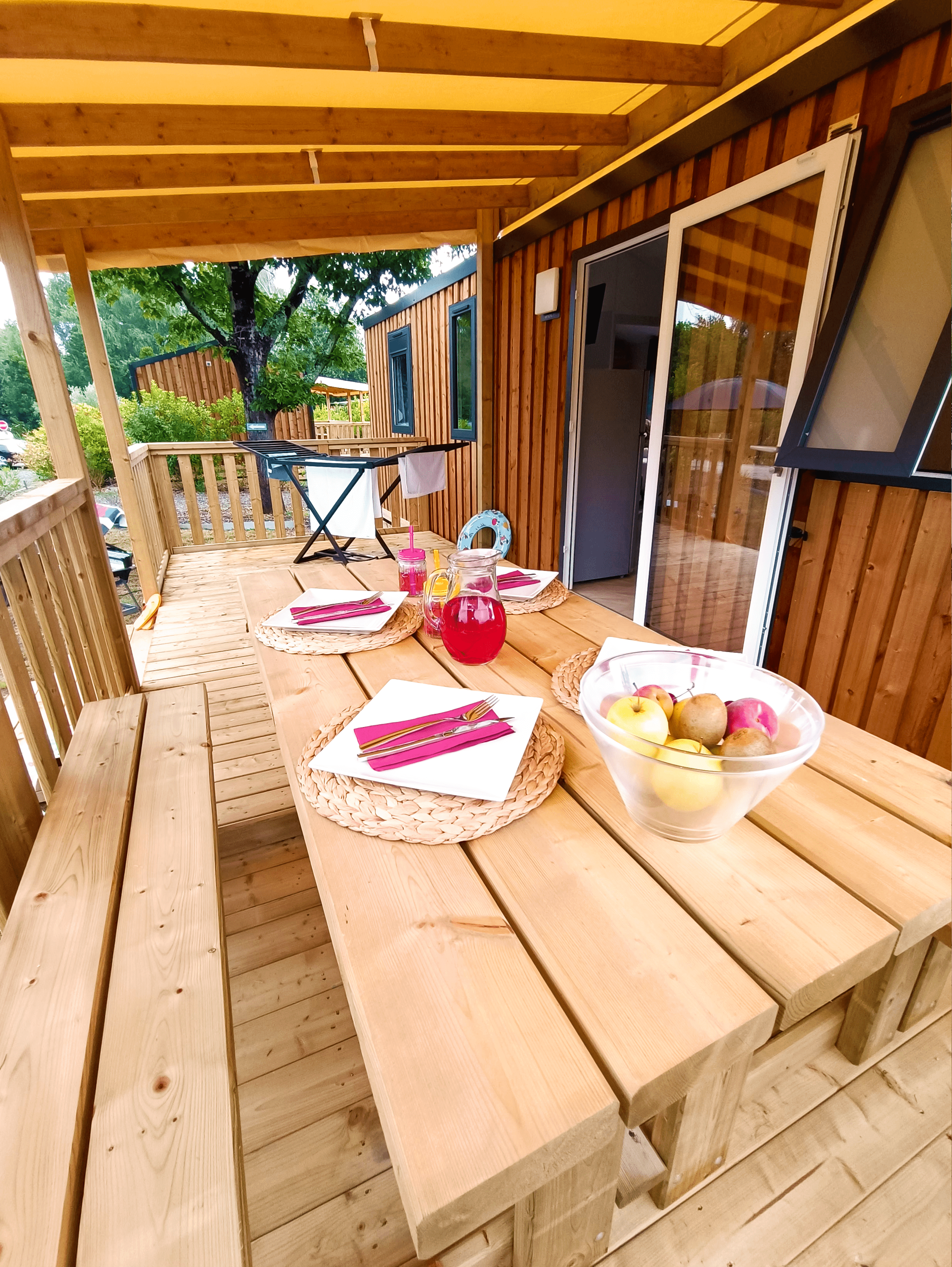 - Semi-covered wooden terrace