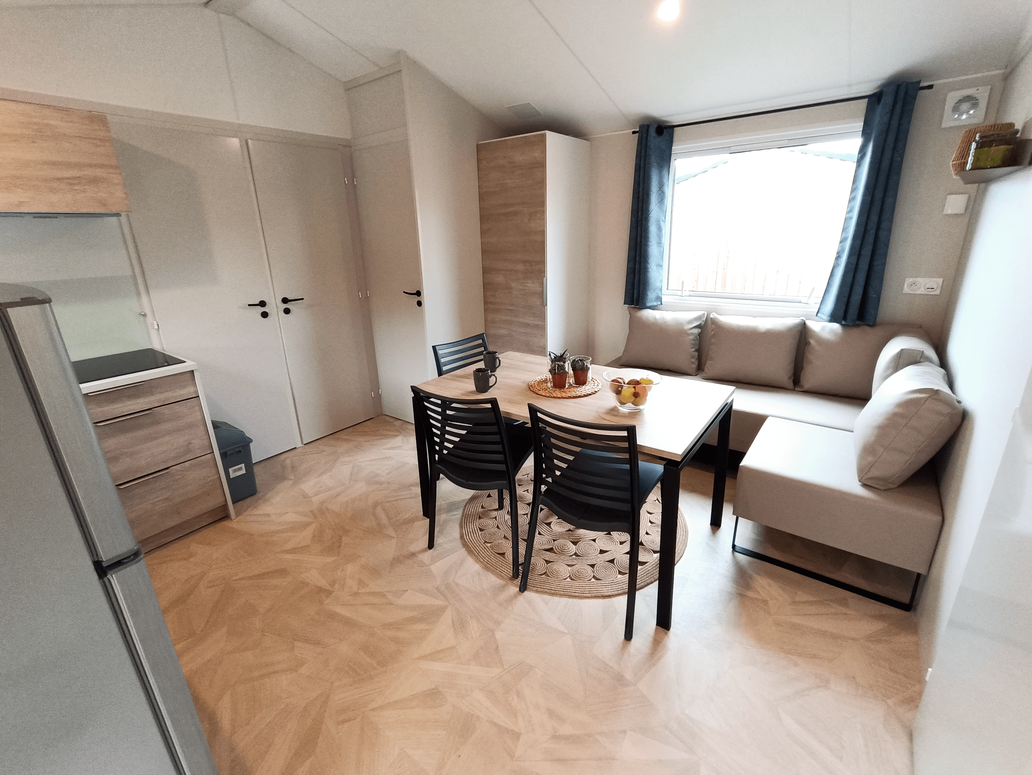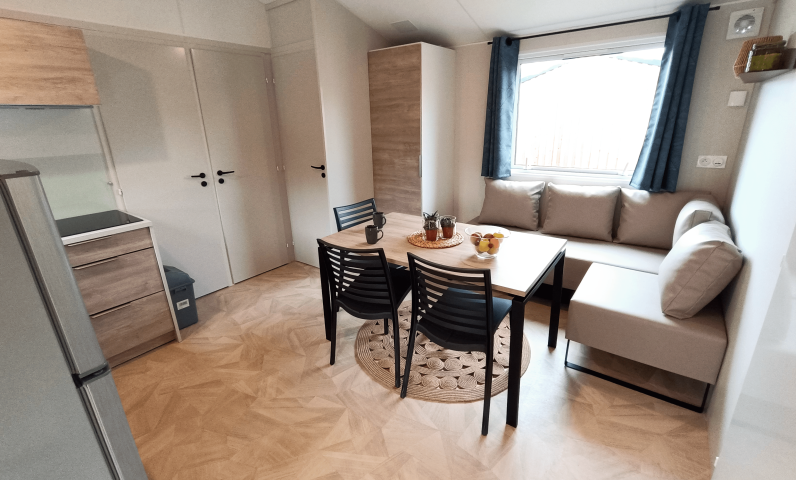 - Double bed (160x190) (duvet and pillows provided)