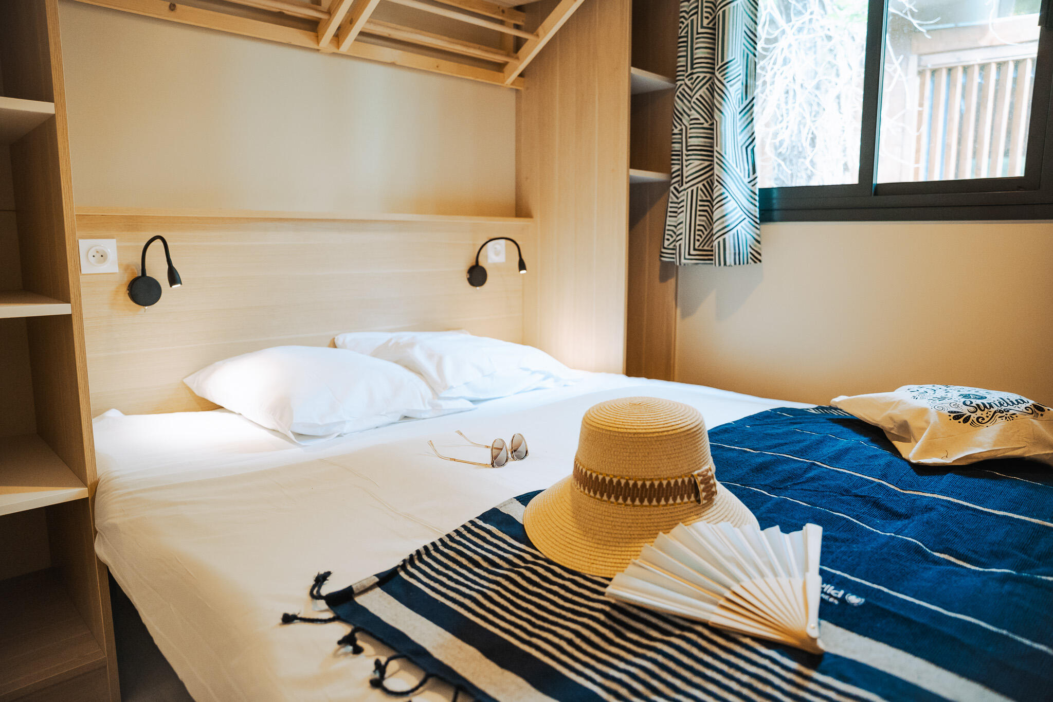 - Double bed (140x190) (duvet and pillows provided)