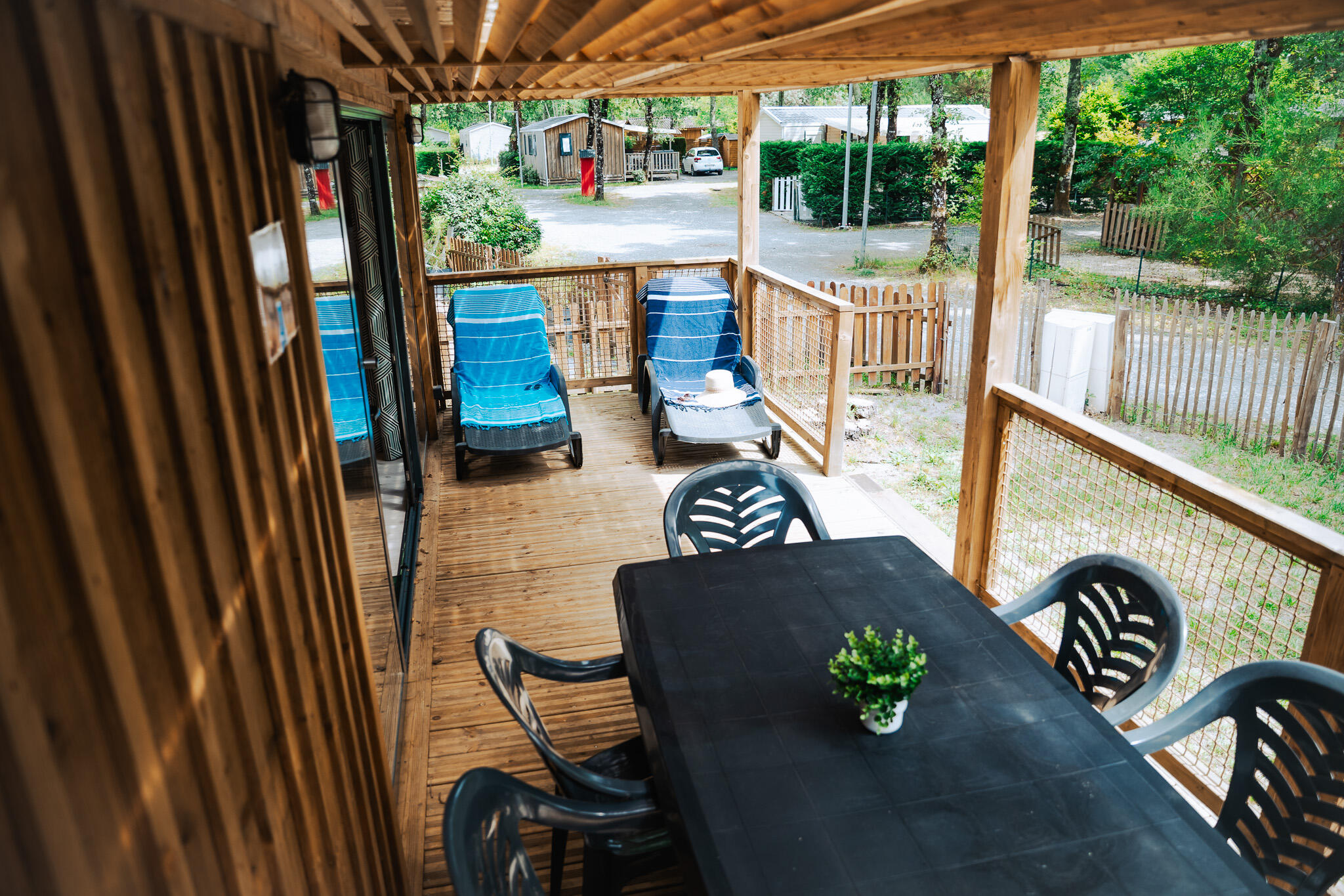 - Large covered wooden terrace