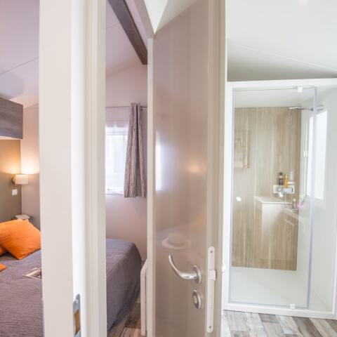 This high-end 36 m² mobile home is also appreciated for the quality of its living spaces, including a spacious living room with a flat-screen TV and Wi-Fi connection, as well as a well-equipped kitchen. The fact that there are two bathrooms is also a great advantage, especially since the accommodation is designed to accommodate a family of six. They can also enjoy a furnished garden lounge, with a table, six chairs, and two sunbeds.