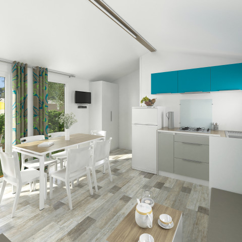 Woonkamer met eethoek en elektrische verwarming. TV en WiFi inbegrepen.